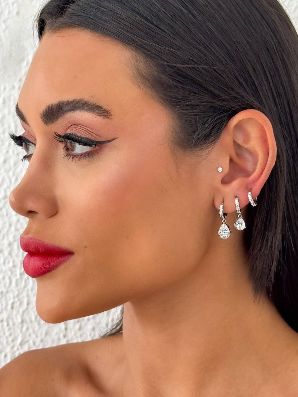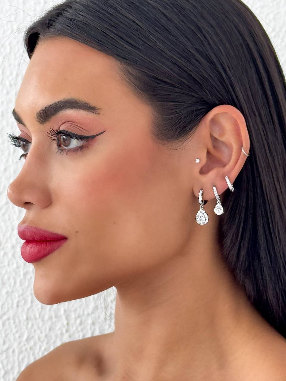 Brinco Prata Pingo Strass 1°, 2° e 3° Furo